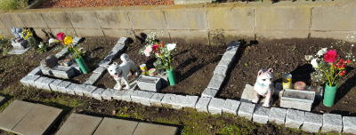 お客様からからいただいた花束をウチの子たちのお墓におすそわけしました。